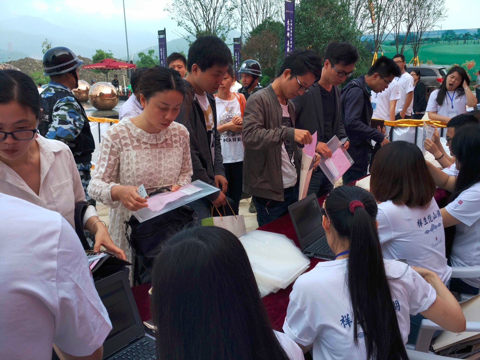 为了避免天气的炎热、方便业主选房,祥生悦山湖特地在营销中心搭建千人的展蓬。本次开盘为祥生悦山湖的首次一期开盘,火爆的前期认筹,在开盘这天更将火爆推至顶点。定于8点08分开盘的现场,天刚亮就有准业主来到营销中心签到等候,开盘前现场就已座无虚席。