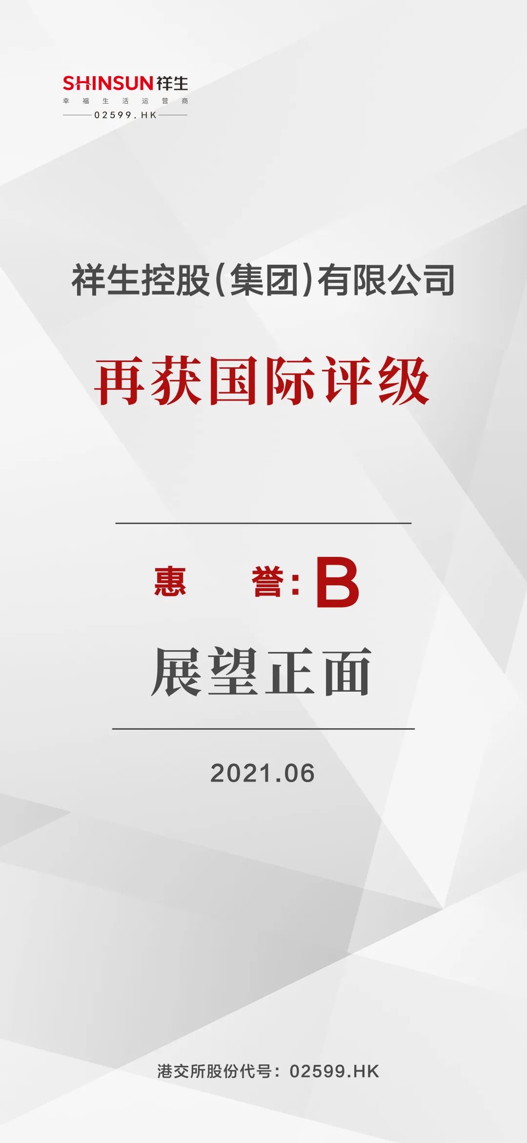 2021年6月3日,国际评级机构惠誉确认祥生控股(集团)有限公司(Shinsun Holdings (Group) Co. Ltd.,简称“祥生控股集团”,02599.HK)长期发行人违约评级(IDR)为“B”,展望“正面”。此前,穆迪、标普、联合国际三家国际评级机构已相继发布对祥生控股集团的长期主体信用评级结果——穆迪授予B2评级、标普授予B评级、联合国际授予BB-评级,评级展望“稳定”。